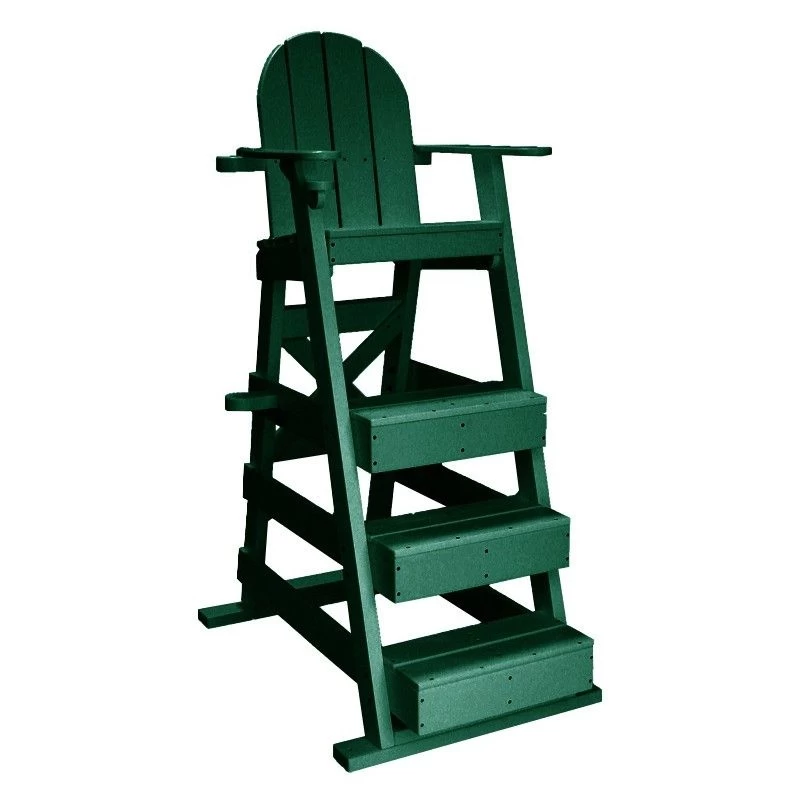 Our Recycled Plastic Three Platform Lifeguard Chair is made of weather resistant , low maintenance recycled plastic. This lifeguard chair requires some assembly and unlike most lifeguard chairs can be delivered by UPS. Includes built-in drink holder, umbrella holder, and three non-slip platforms.