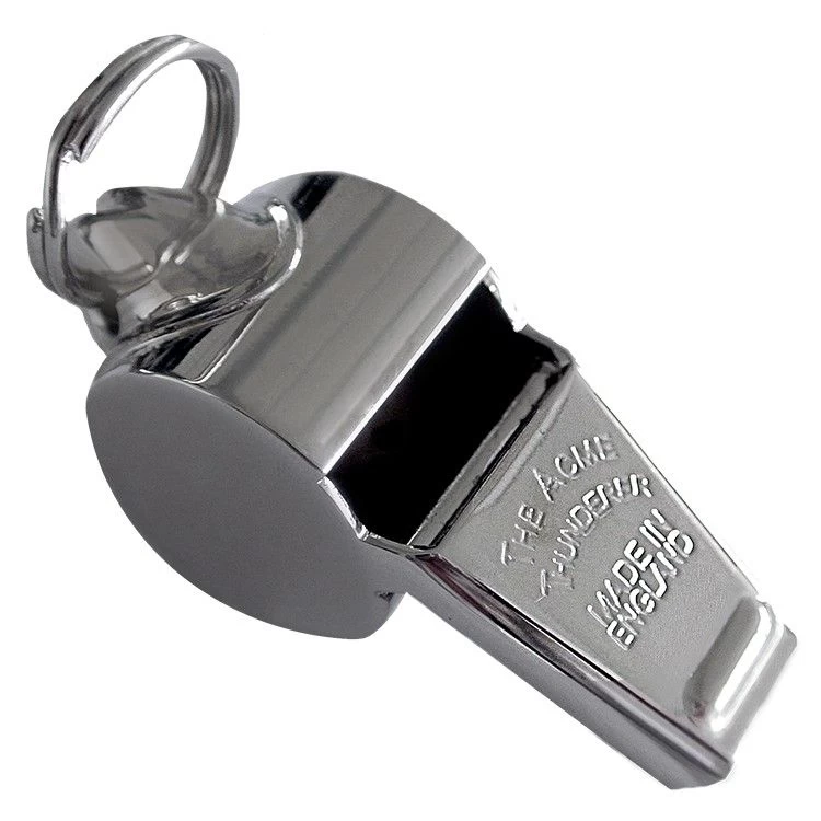 This Acme Thunderer Whistle features a nickel-plated, tapered mouthpiece. Designed to give a shrill, strong call, it is a must for sports, Lifeguards, safety instructors and more. The Acme whistle has a distinct sound and is made to get attention immediately.