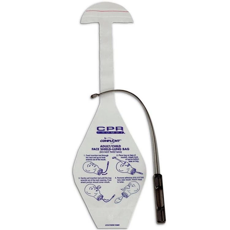 Single use Adult / Child Face-Shield / Lung Bags has a unique adhesive strip to ensure face shield stays in place during training.