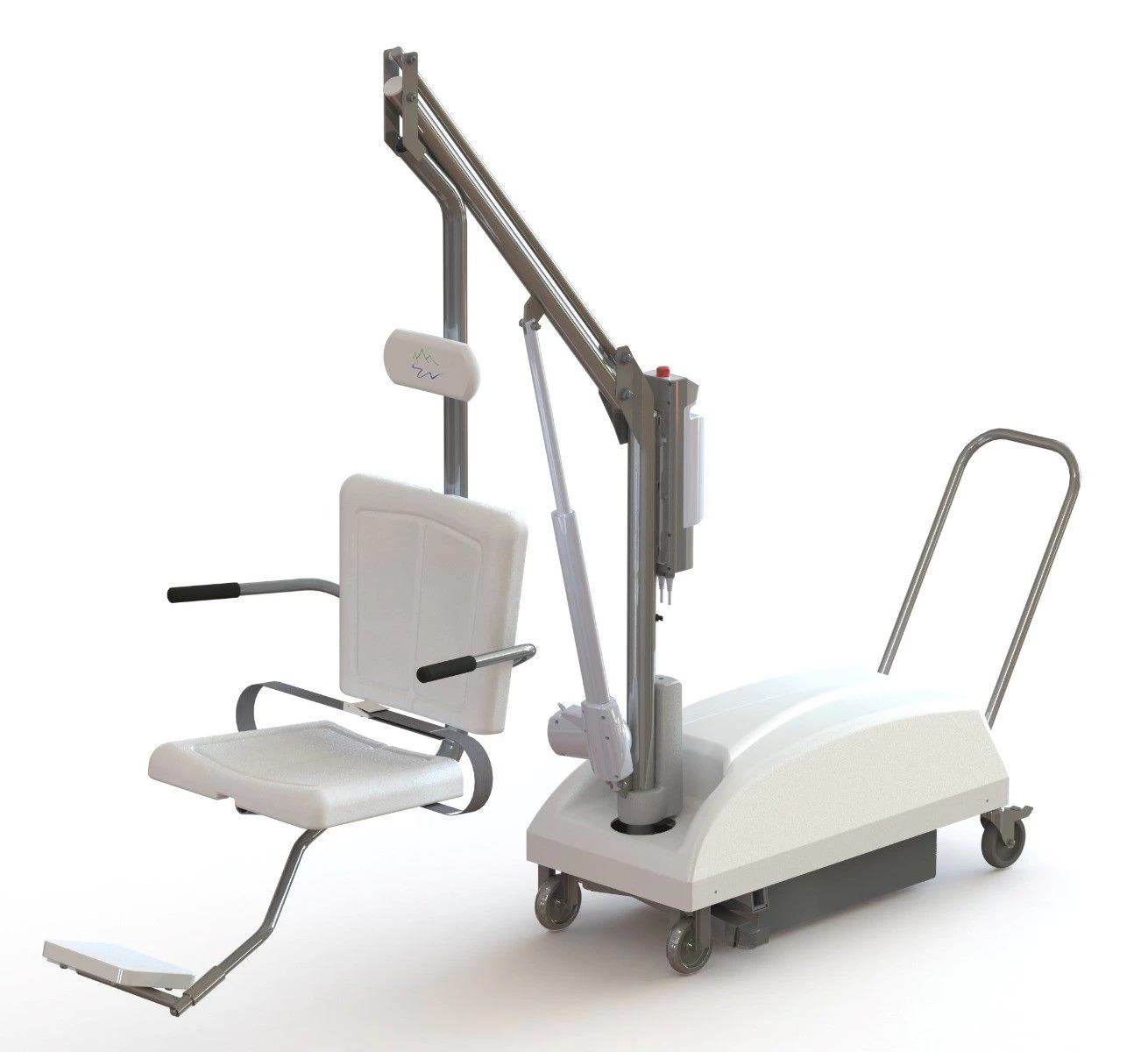 The Portable Motion Trek BP 300 Deluxe is an ADA compliant battery powered lift that is self-operable from the deck and the water with a robust operating system. This portable lift requires no anchor and is moveable and easy to operate. The Deluxe model includes an upgraded footrest, headrest and arms.