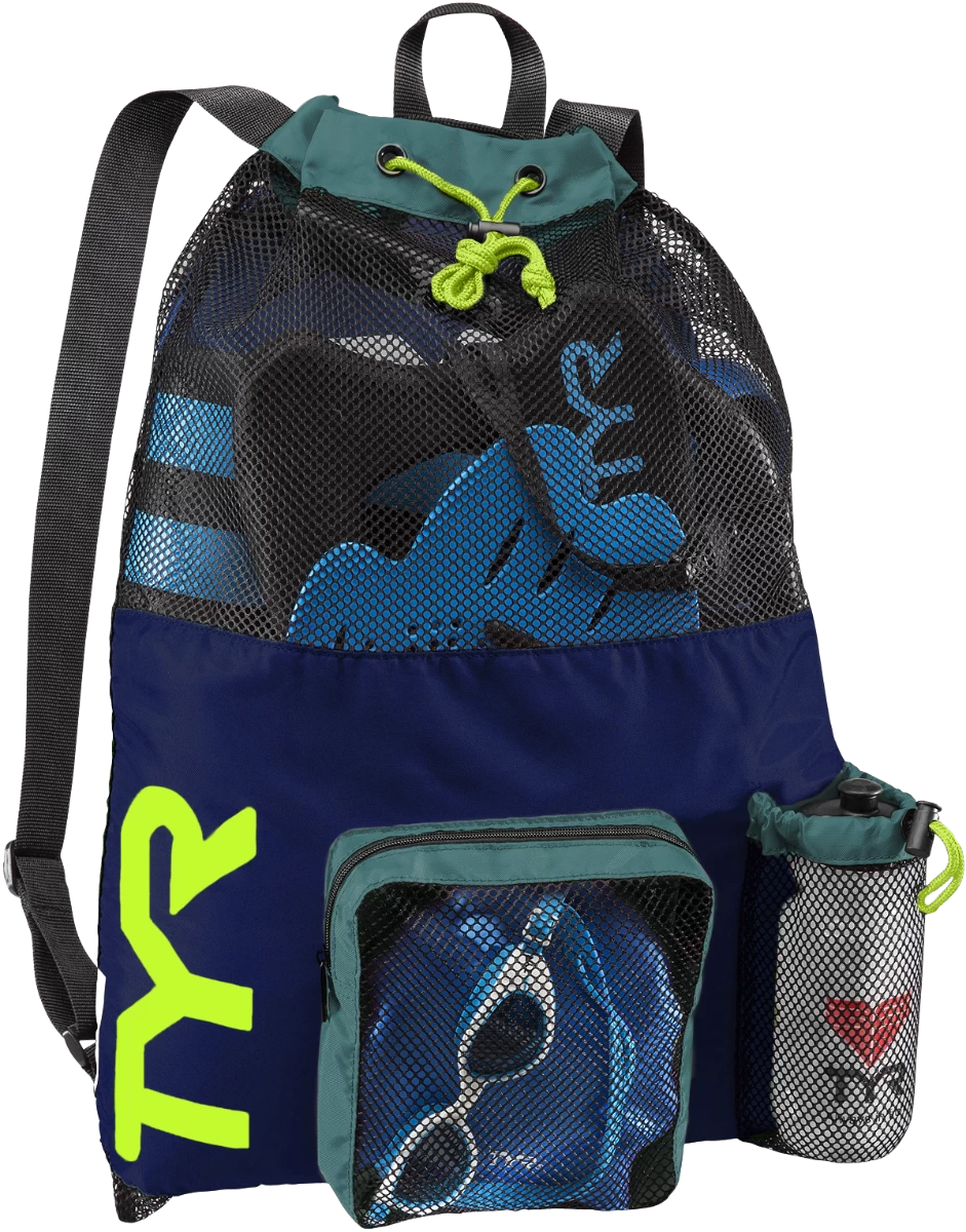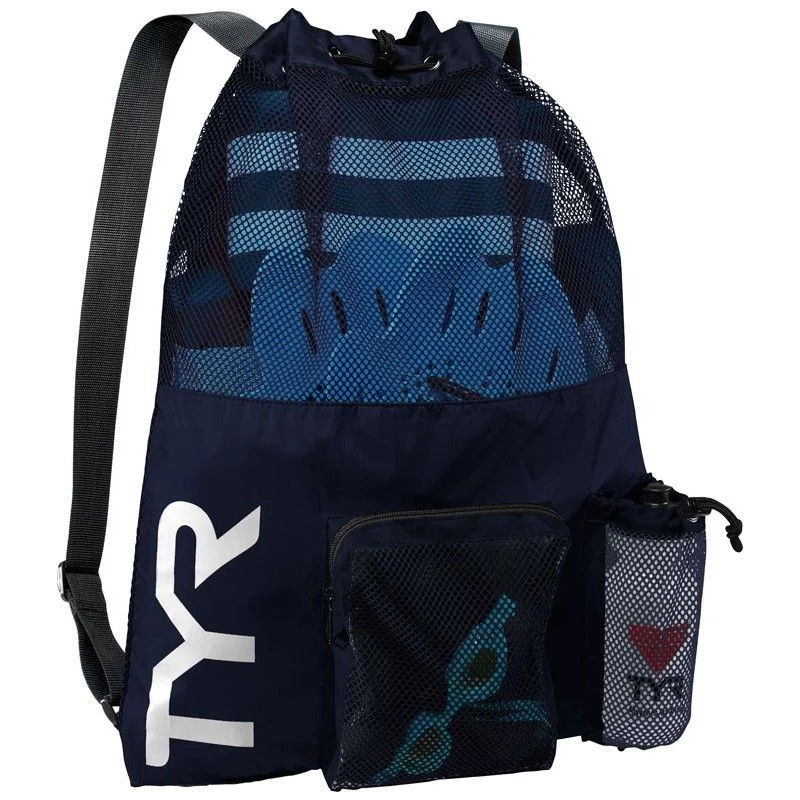 Updated with a 20% bigger design, the Big Mesh Mummy Backpack is the perfect choice for hauling swim and workout gear. Â Your favorite equipment bag just got bigger! The TYR Big Mesh Mummy Backpack is the perfect choice for hauling all your swim gear to and from the pool.